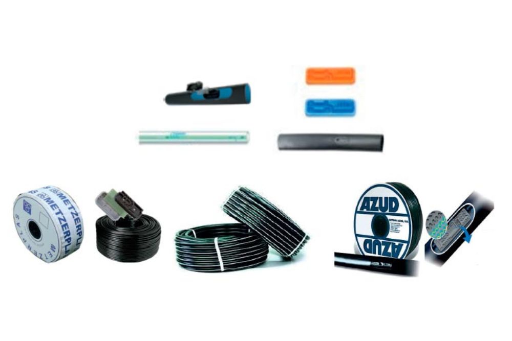 Diferente espesor de manguera y cinta de goteo.